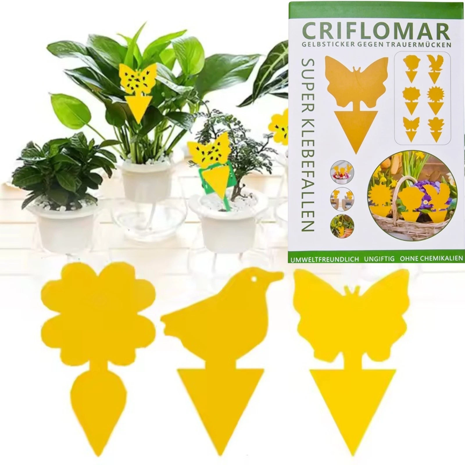 Diese Gelbtafeln (48 Stück) bieten eine einfache und wirksame Methode, um Trauermücken, Weiße Fliegen, Blattläuse & Co. zu überwachen und zu reduzieren. Die intensiv gelbe Farbe wirkt als Lockreiz, die beidseitige Klebeschicht hält die Insekten sicher fest – ganz ohne Sprays oder unangenehme Gerüche. CRIFLOMAR Gelbsticker gegen Trauermücken sind besonders effektiv.